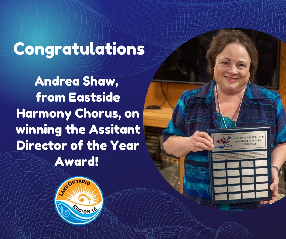 Do you have an Assistant Director who has made significant contributions to your chorus? Does she go above and beyond the call of duty? Do your members and Director wonder what they would do without her? The Region invites your nomination for the ASSISTANT DIRECTOR AWARD. This is a prestigious award we’re sure your Assistant Director would be honoured to receive.